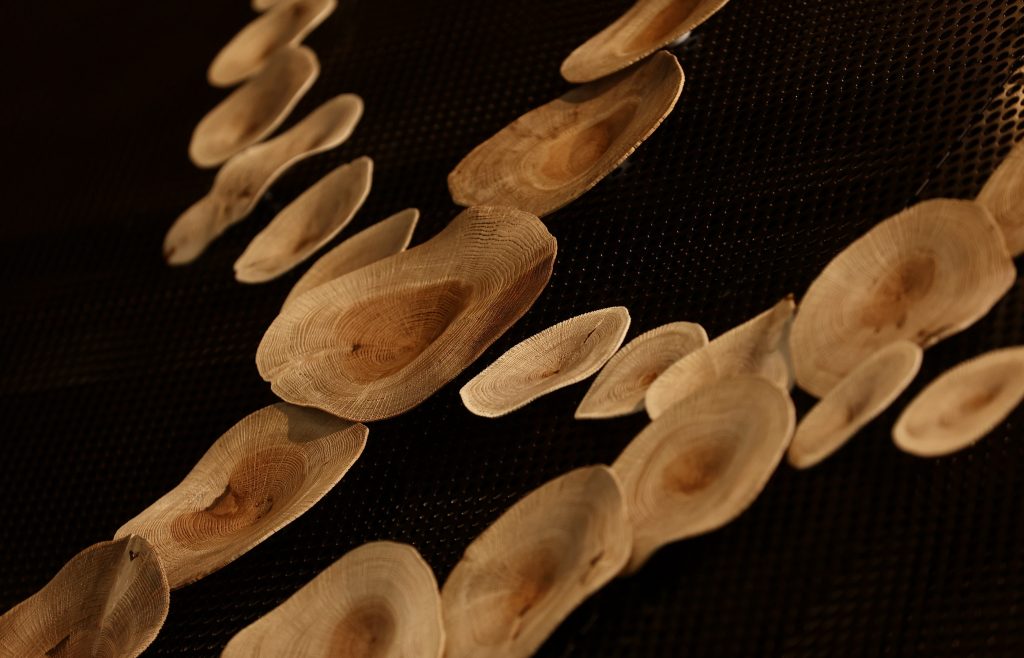 Le salon Révélations au Grand Palais a été l’occasion de présenter pour la première fois ce travail monumental sous forme de fresque murale. Pour l’exposition du Fonds Charlois, j’ai sélectionné un extrait composé de 175 tranches de dentelles représentant une branche charpentière de ce magnifique chêne centenaire de la forêt de Pointre.